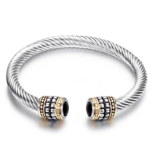women men stainless steel jewelry semi-precious stone cable wire twisted cuff bracelet