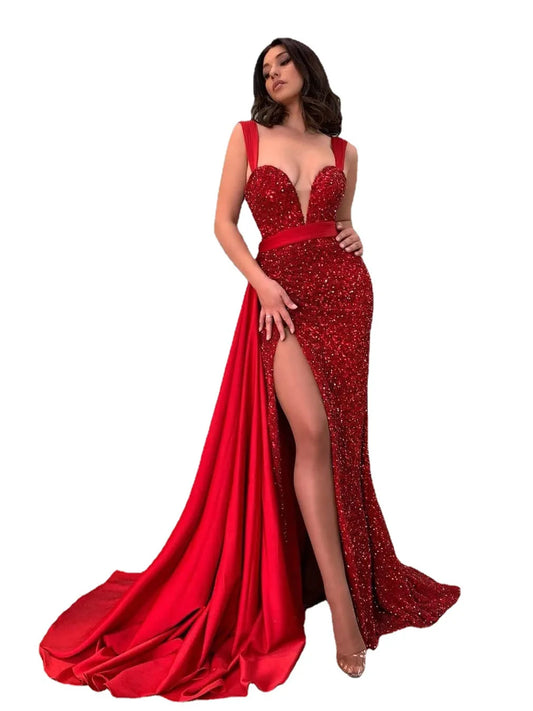 Deep V Neck Prom Dresses Shiny Mermaid Women Party Dresses