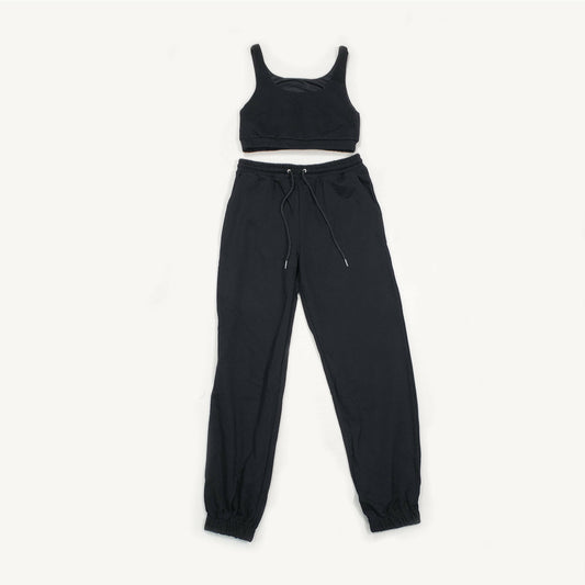 Cotton Women Two Piece Sports Bra Top And Jogger Sweat Pants Set